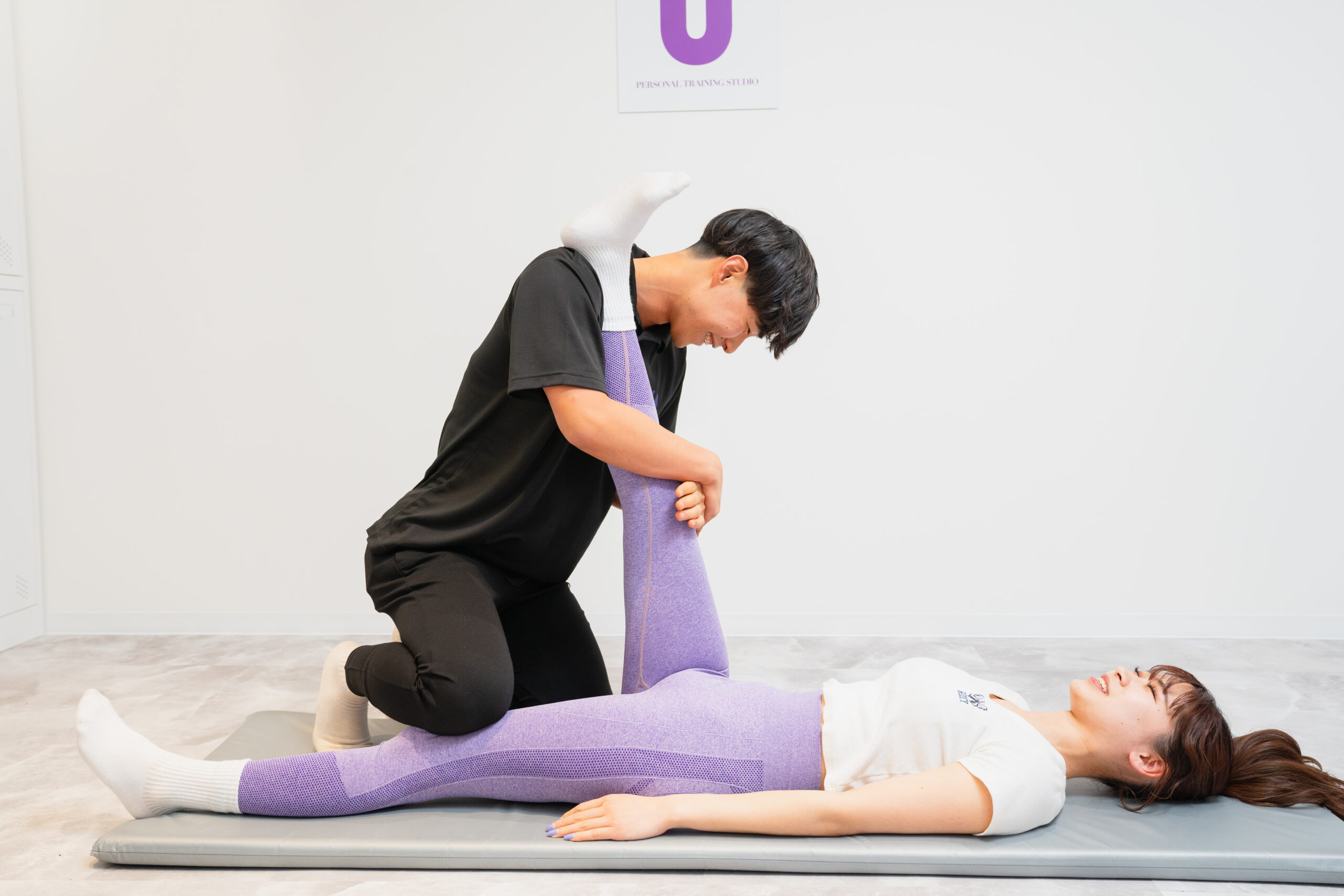 スタジオUトレーナー心地よさを感じるくらいの強さでゆっくりと伸ばしてください。